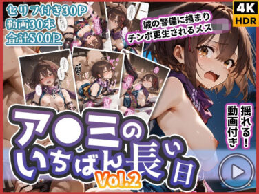 わたあめ重工 【動画付き】ア◯ミのいちばん長い日Vol.2〜城の警備に捕まりチンポ更生されるメス◯キ〜